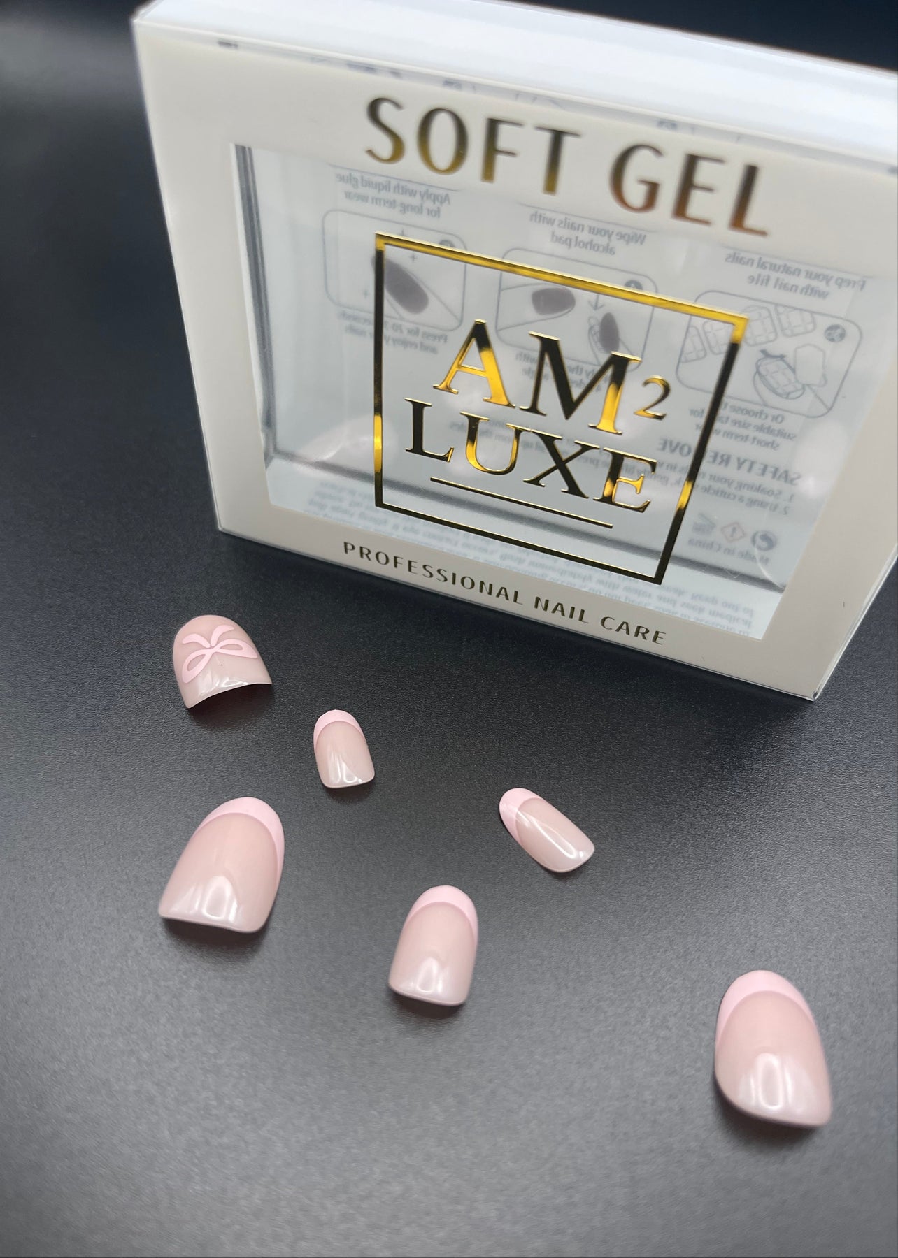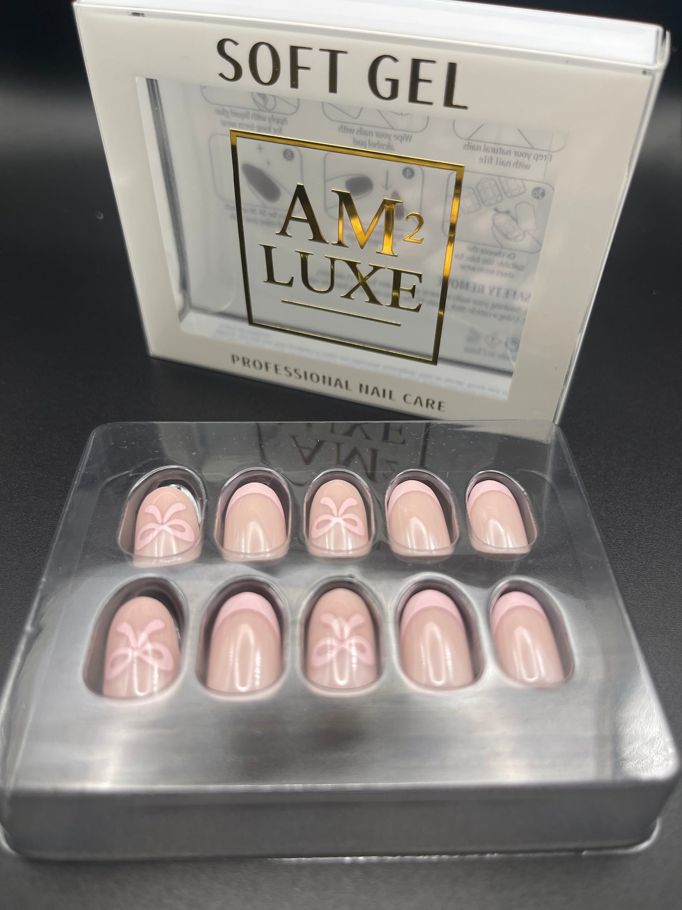 Design: Soft pink base with white bow details